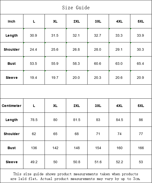 Centimeter L XL 2XL 3XL 4XL 5XL