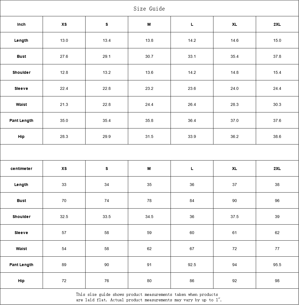 | Pant Length | 89 | 90 | 91 | 92.5 | 94 | 95.5 |
